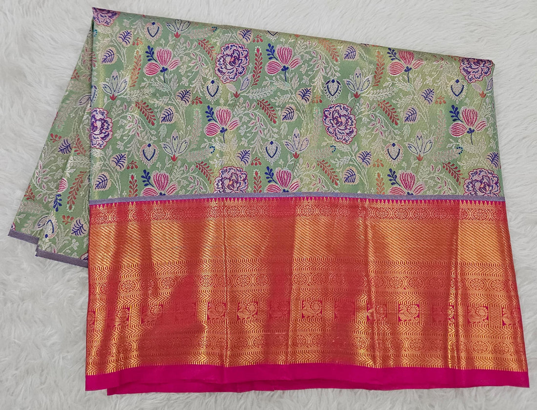 Add a touch of tradition to your little one’s festive wardrobe with this elegant semi-pattu...