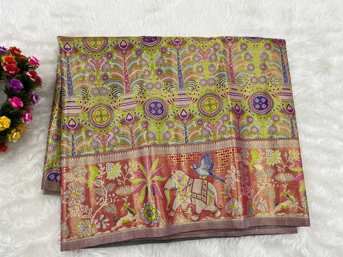 Add a touch of tradition to your little one’s festive wardrobe with this elegant semi-pattu...
