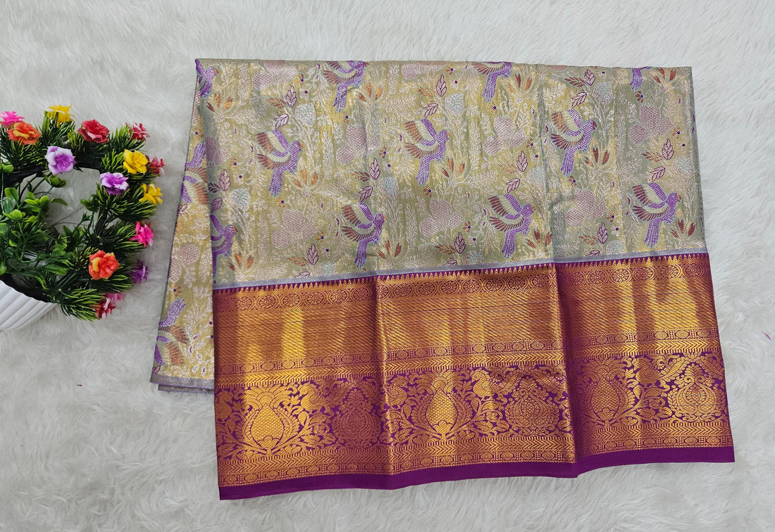 Add a touch of tradition to your little one’s festive wardrobe with this elegant semi-pattu...