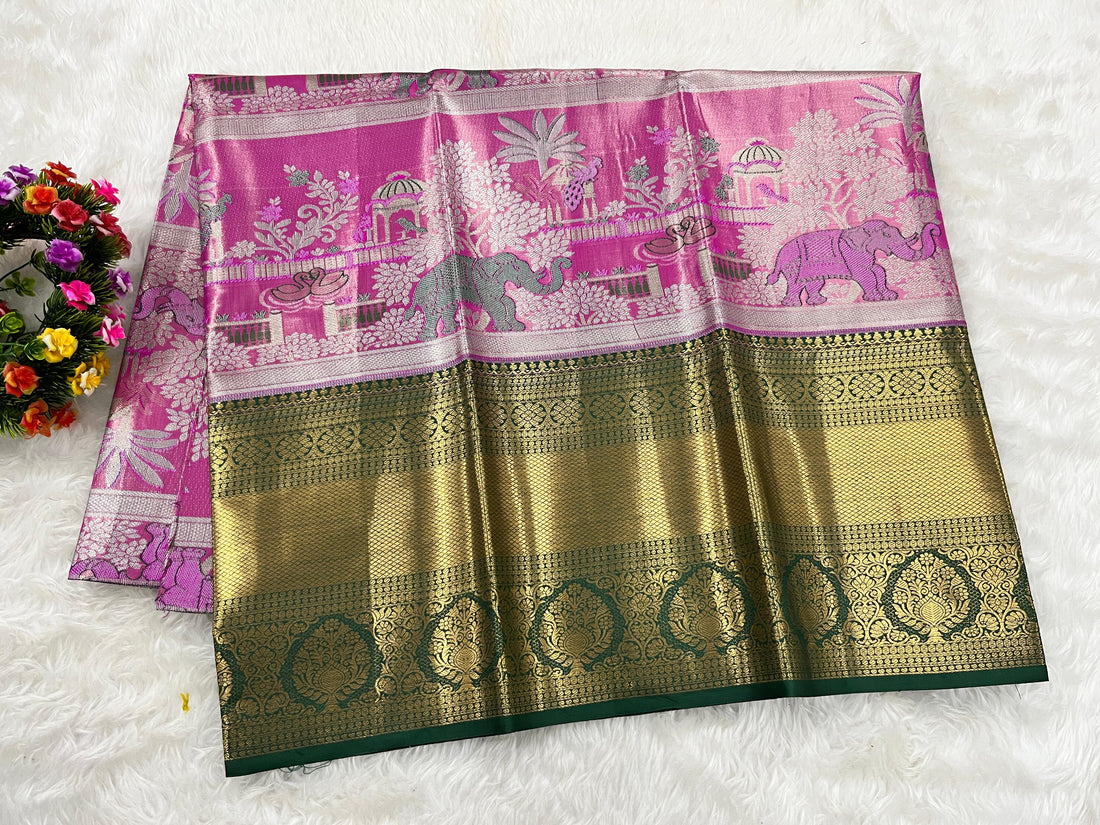 Add a touch of tradition to your little one’s festive wardrobe with this elegant semi-pattu...