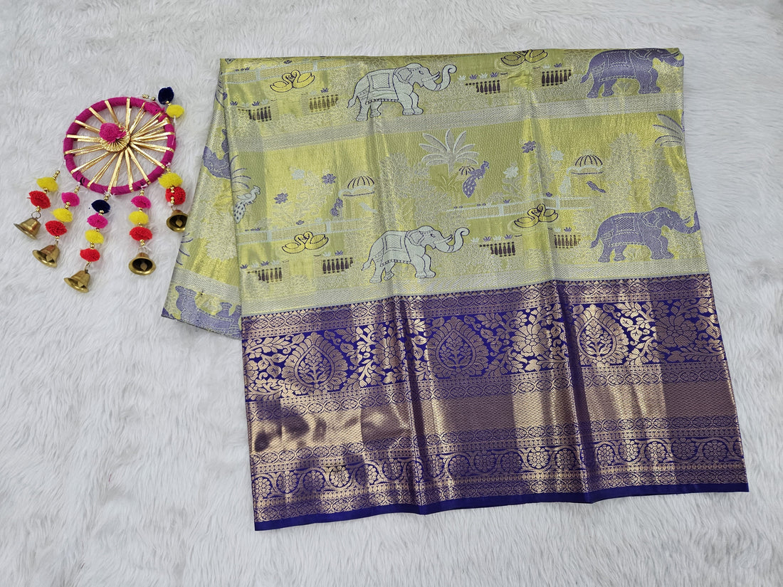 Add a touch of tradition to your little one’s festive wardrobe with this elegant semi-pattu...