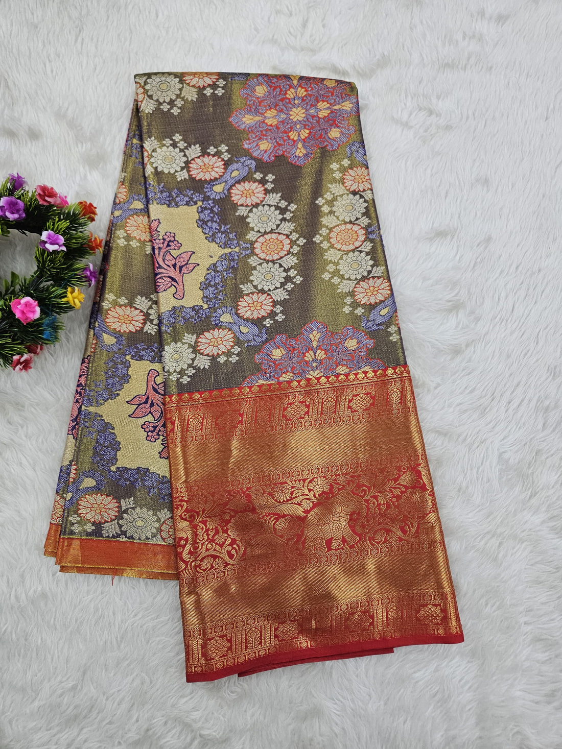 Add a touch of tradition to your little one’s festive wardrobe with this elegant semi-pattu...