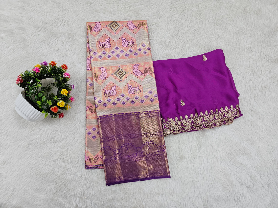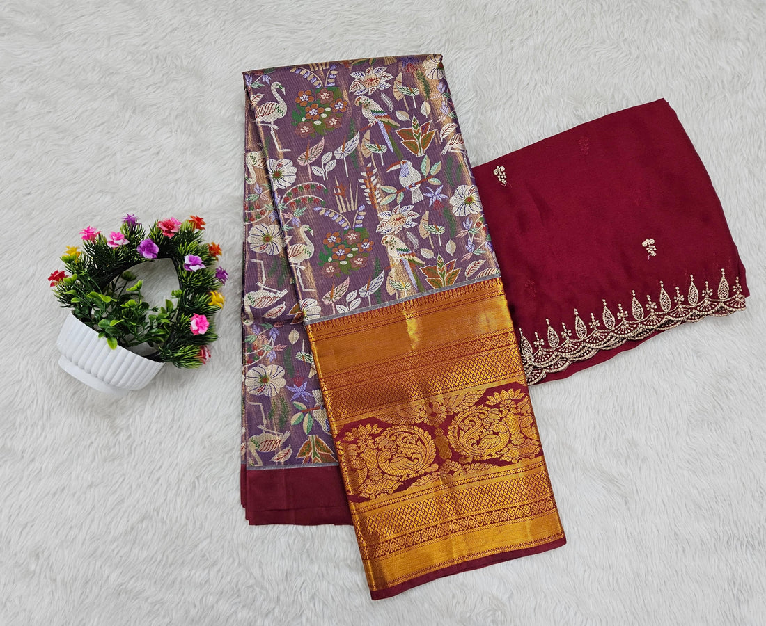 Add a touch of tradition to your little one’s festive wardrobe with this elegant semi-pattu...