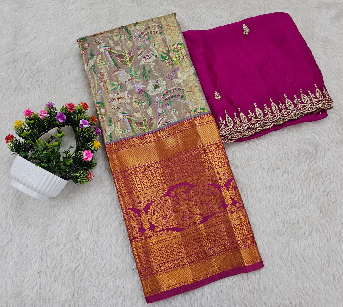 Add a touch of tradition to your little one’s festive wardrobe with this elegant semi-pattu...