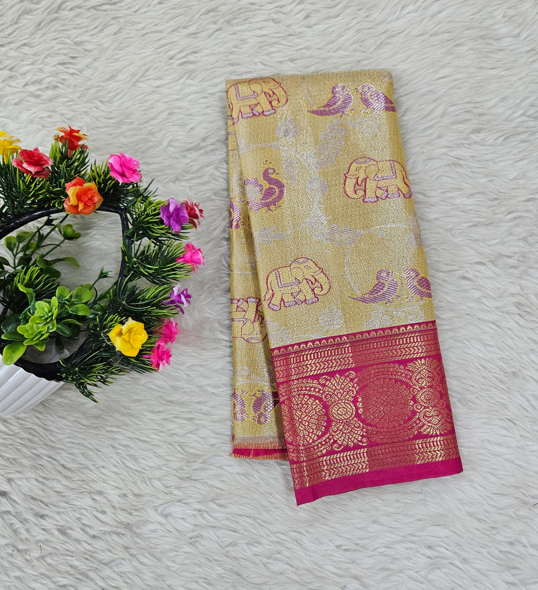 Dress your little one in traditional charm with this beautiful baby lehenga material set, specially...