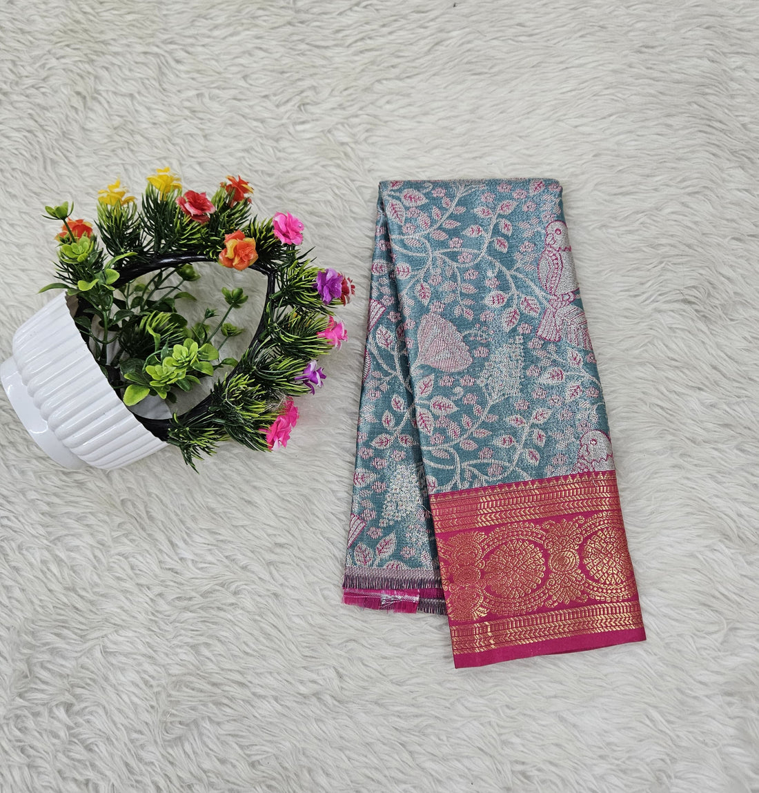 Add a touch of tradition to your little one’s festive wardrobe with this elegant semi-pattu...