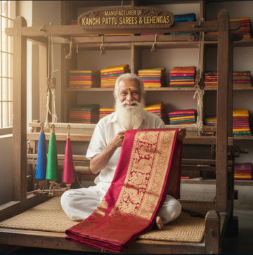 With over 40 years of excellence, we are proud manufacturers of authentic Kanchi Pattu Sarees and Lehengas.