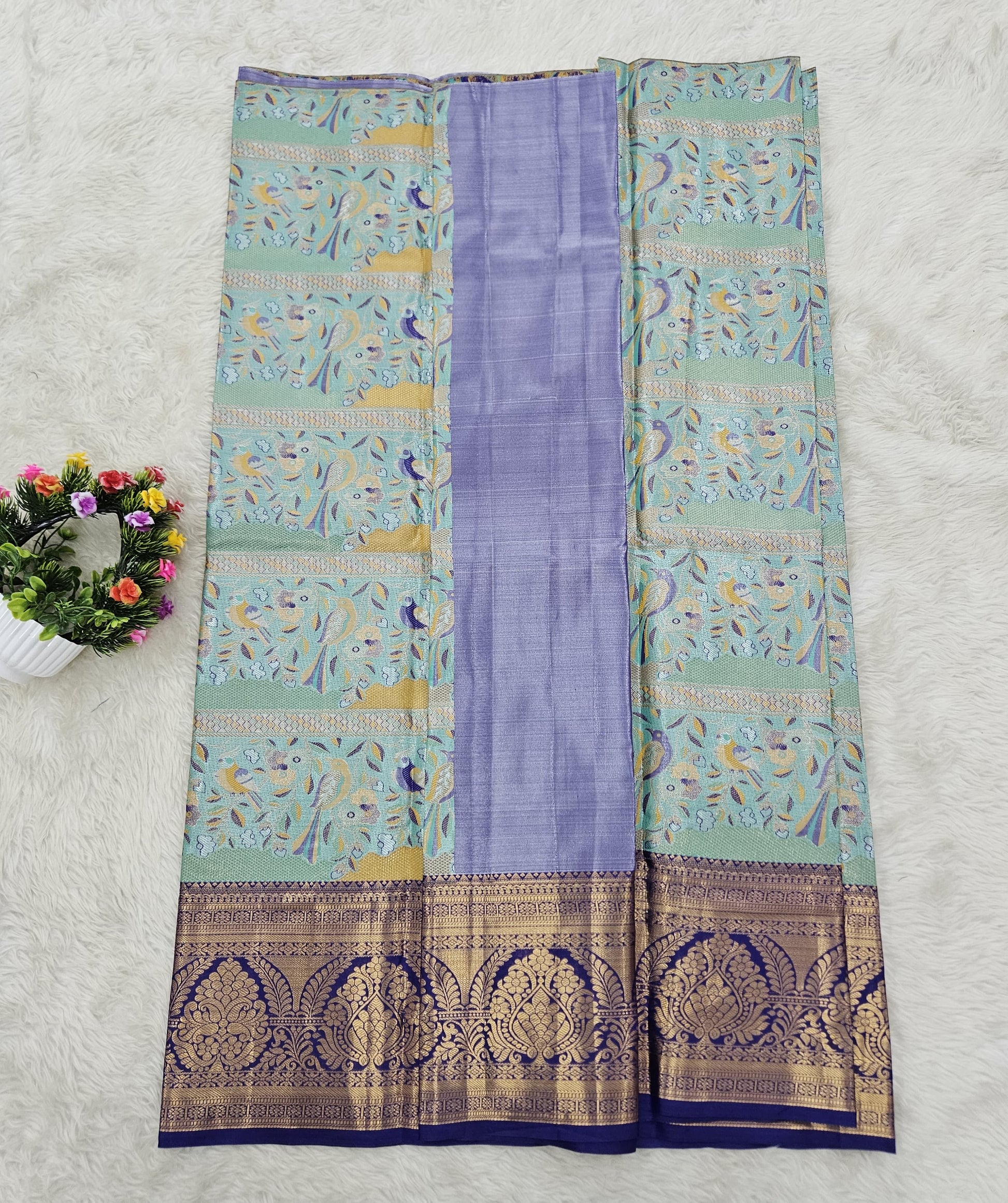 Add a touch of tradition to your little oneβs festive wardrobe with this elegant semi-pattu baby lehenga material set from Vinayaka Silks, perfect for girls aged 5 to 10 years.